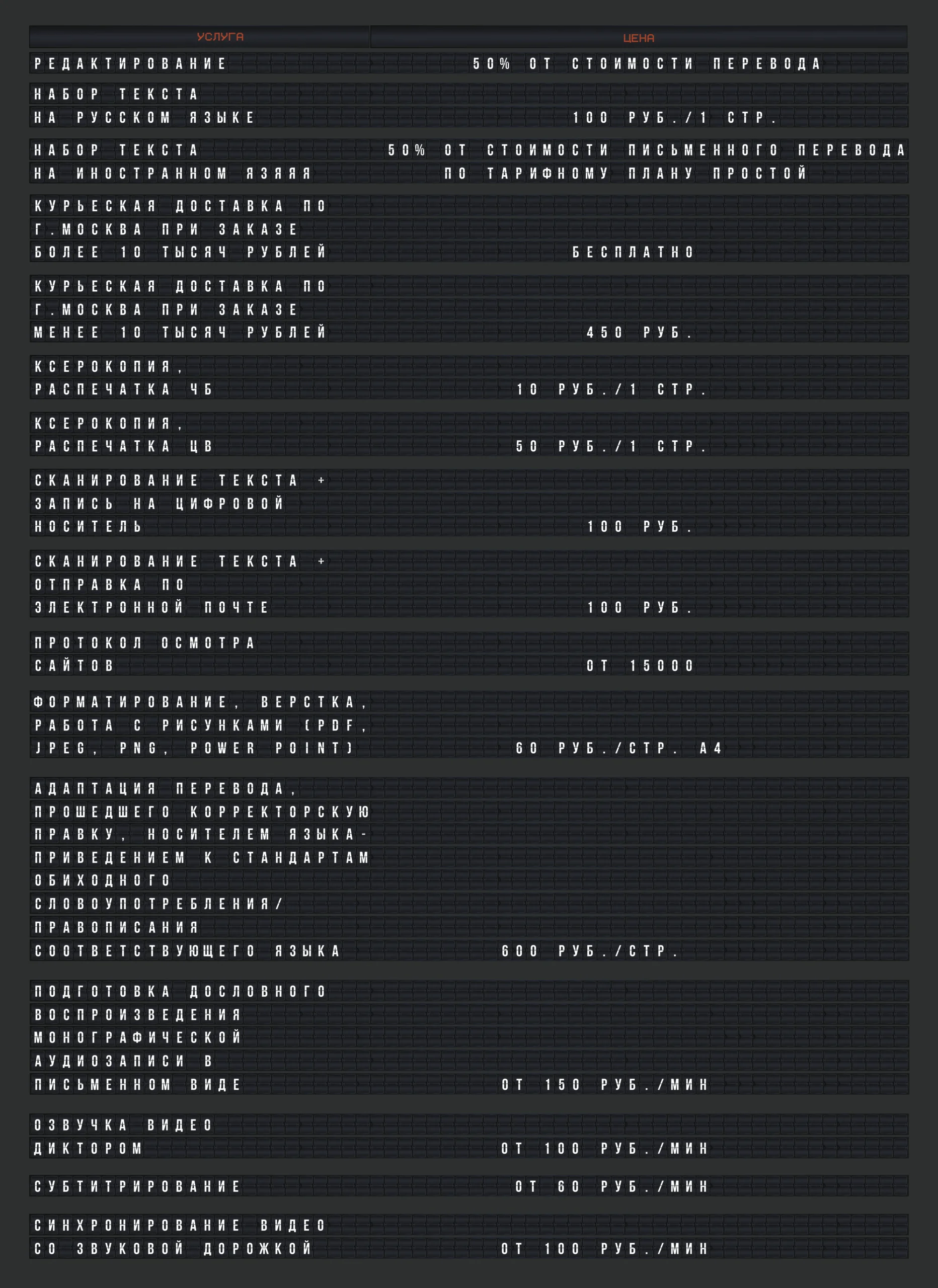 Цены указаны в рублях за 1 переводческую страницу (1800 знаков с пробелами).
